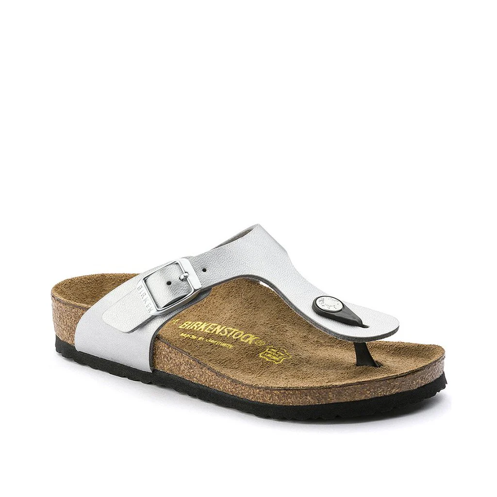 The Gizeh Birko Flor Kids sandal is stylish, versatile, and comfortable. Its design has remained unchanged since 1983, and its timeless style is enhanced by the adjustable buckle and supportive thong.