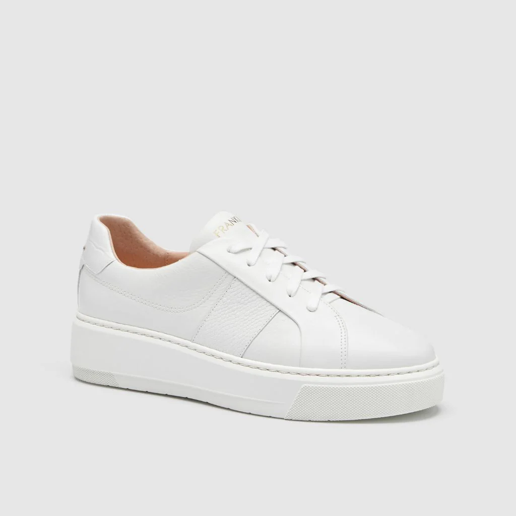 Elevate your sneaker game with Riley - White Tumbled. The statement platform sole and lightweight construction are ideal for daily wear. Innovative support and cushioning, plus eco-friendly cotton laces, add extra charm. Wear them with or without laces thanks to the elastic gusset. The luxe leather finish and eye-catching details make these platform sneakers a must-have.